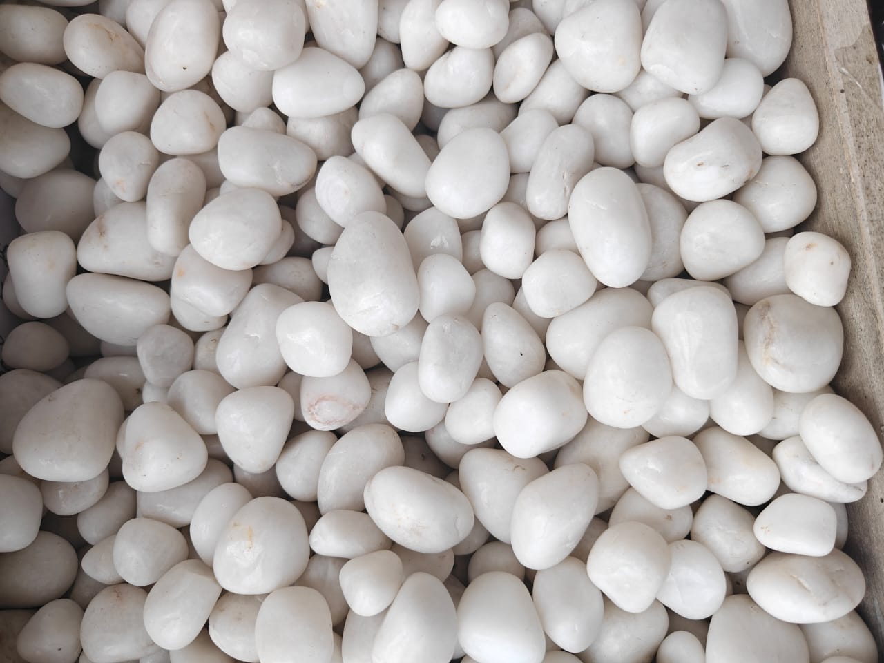 Premium glossy-finish pebbles available in multiple colors. Ideal for indoor decoration, aquariums, and premium landscape design.