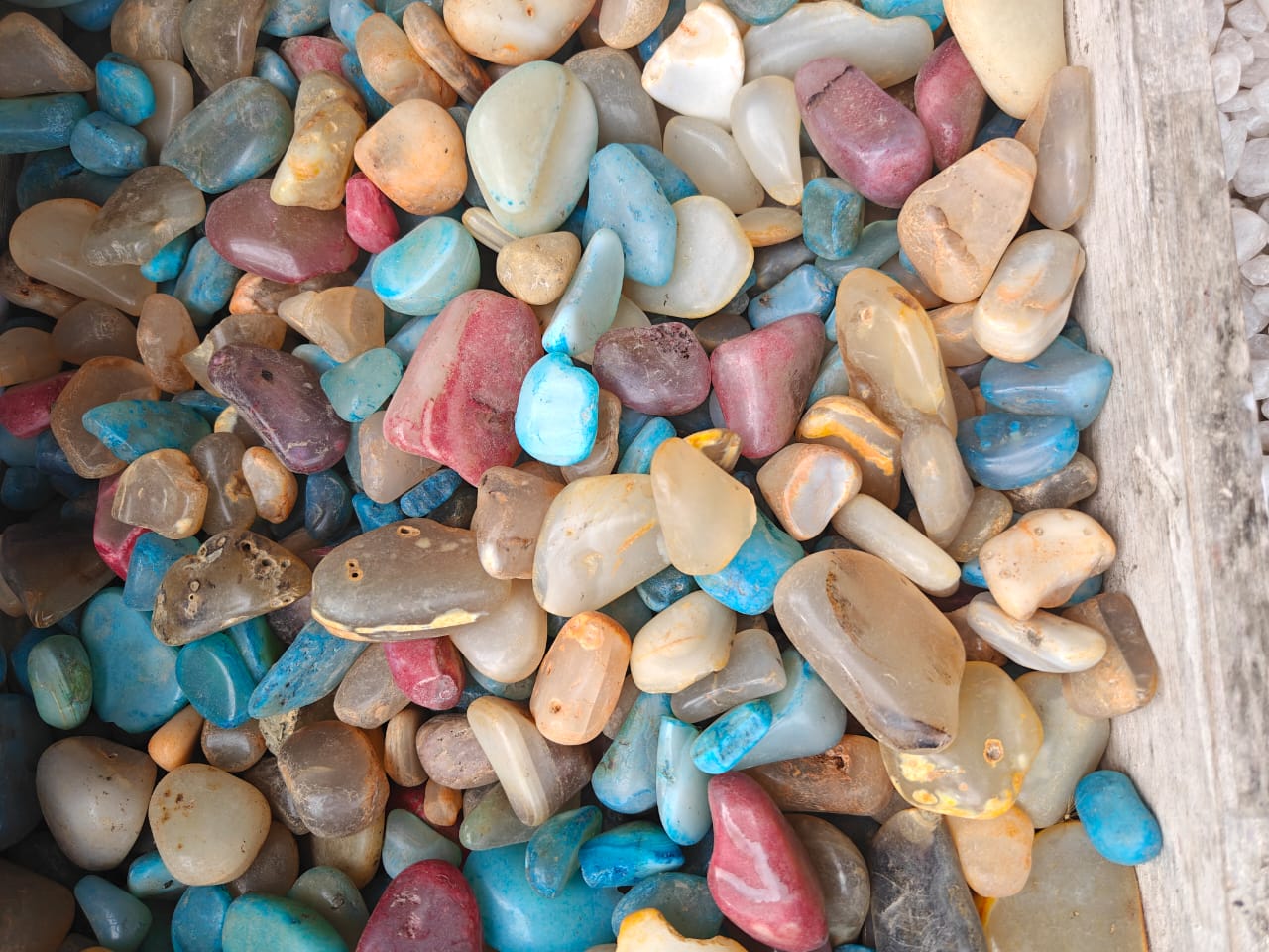 Premium glossy-finish pebbles available in multiple colors. Ideal for indoor decoration, aquariums, and premium landscape design.